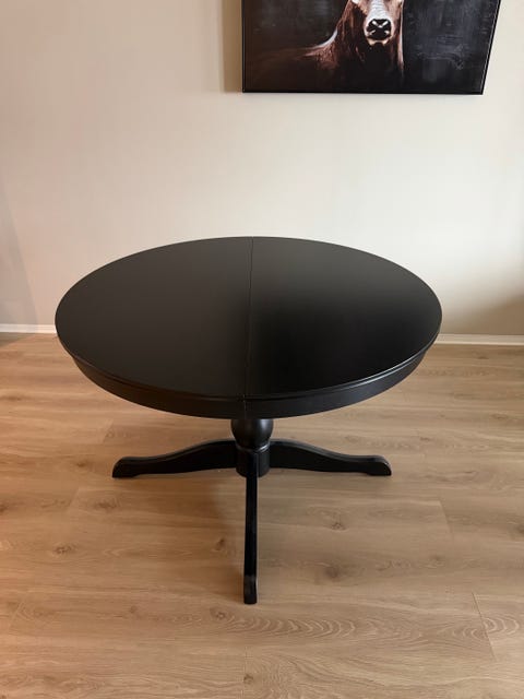 Rundt spisebord i sortlakkert eik