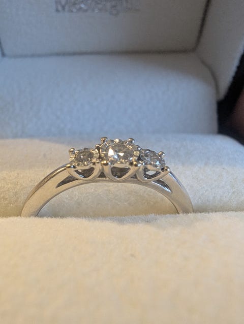 Diamantring 3 stener hvitt gull