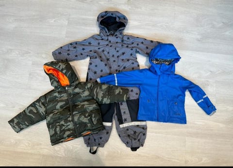 @ str 92 Gutt Regntøy Fleece ULLbody Stilongs Utebukse Alværsjakke Sko Tøfler