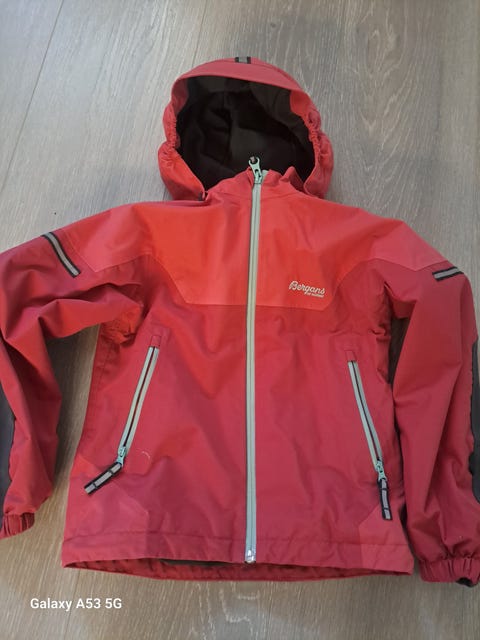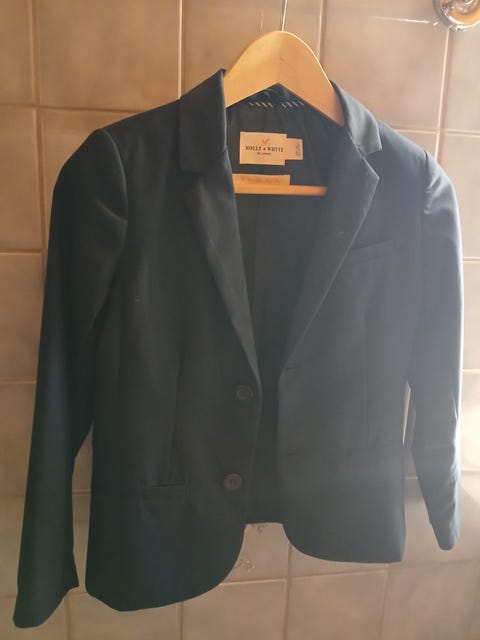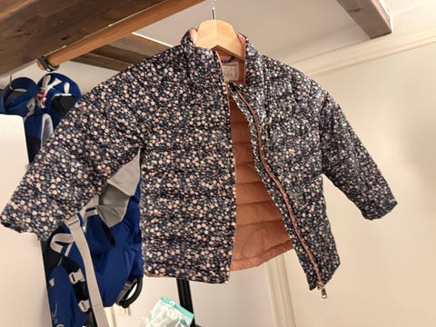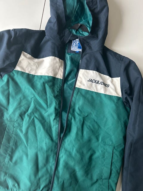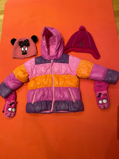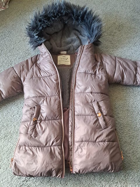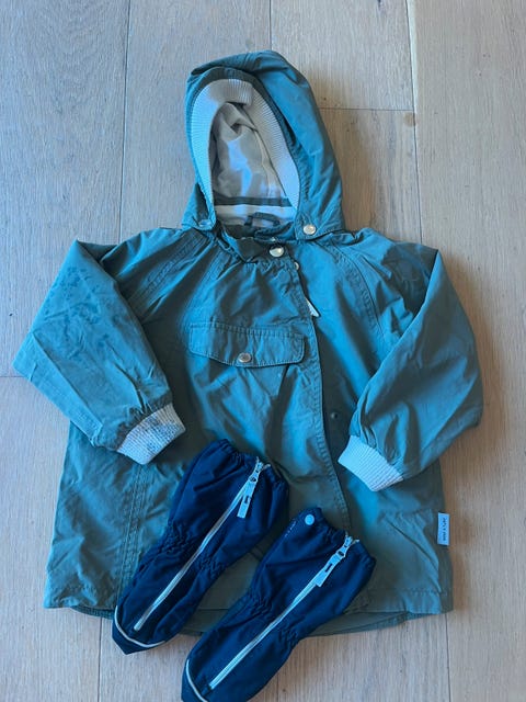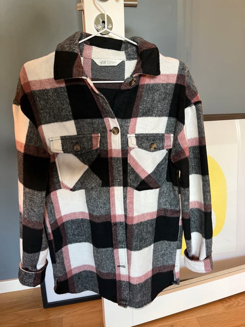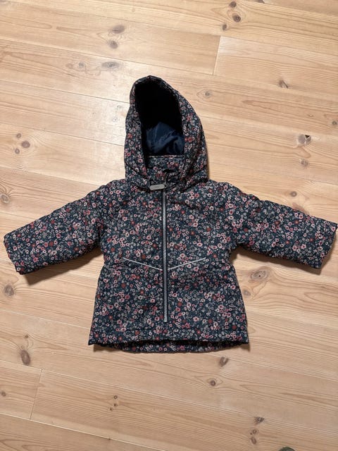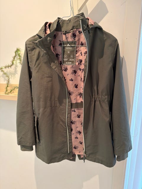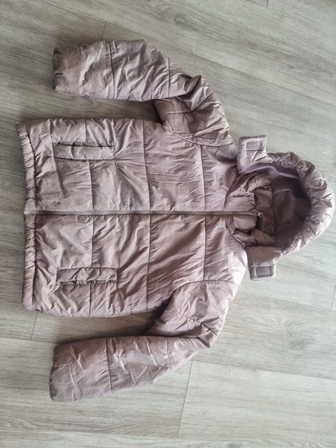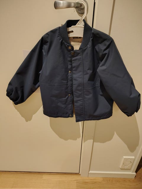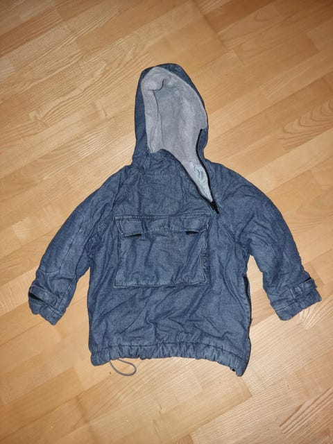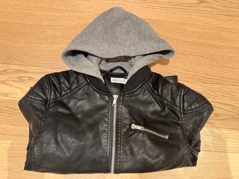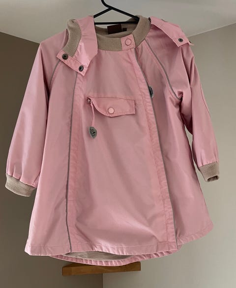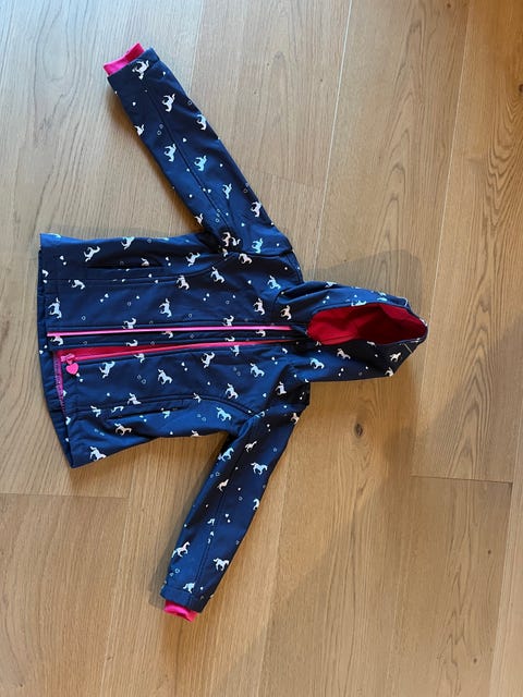 Mellomblå jakke m.rosa knapper og glidlås H& M, hette str. 122/6-7 år kr. 100