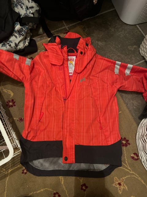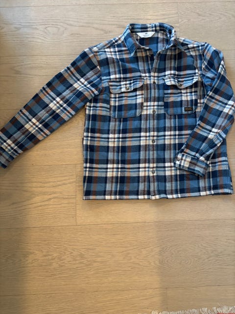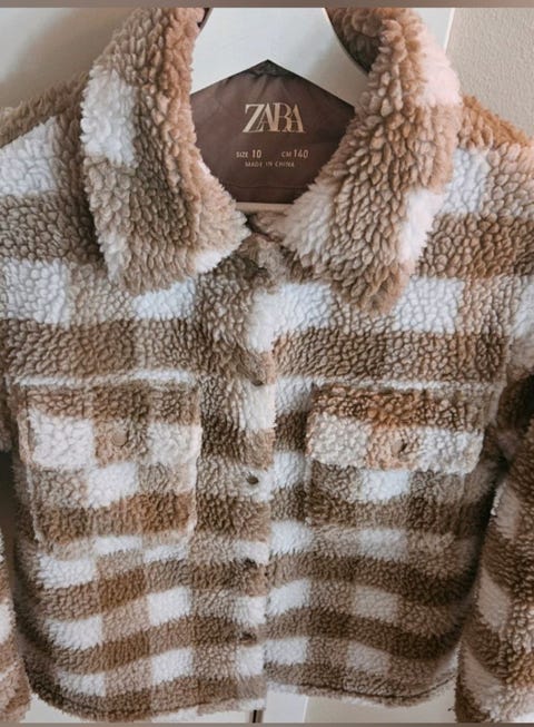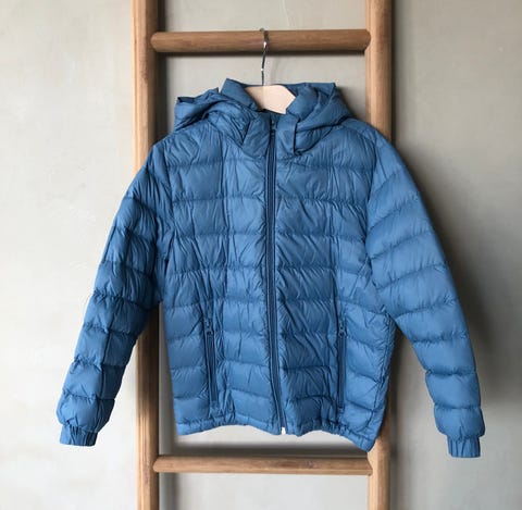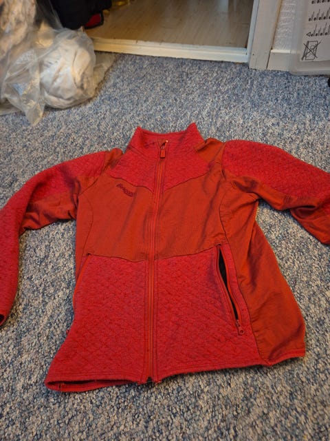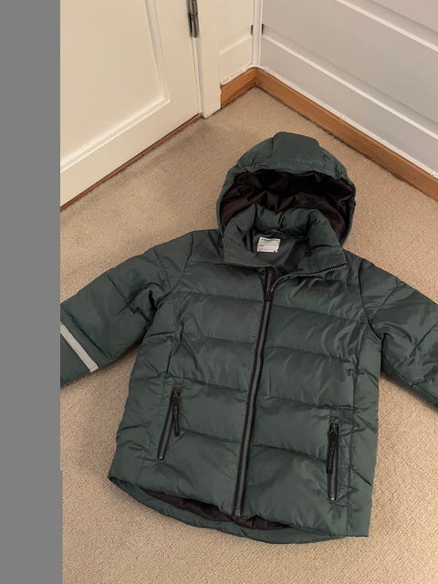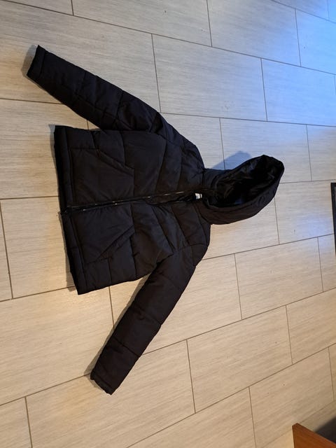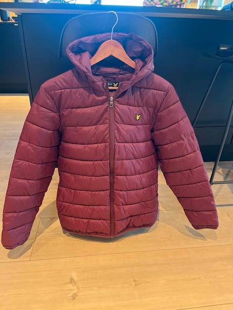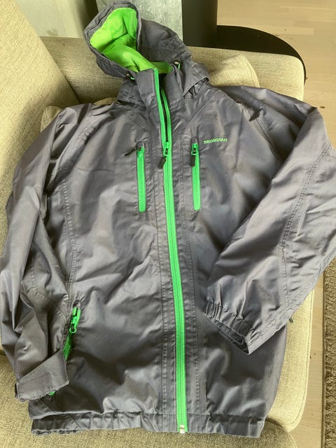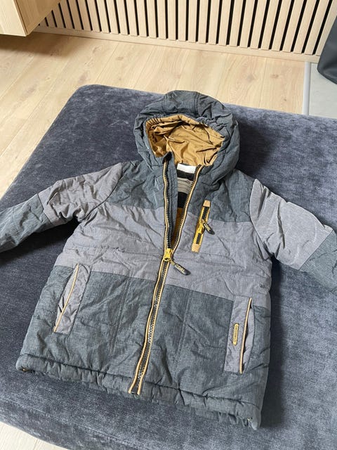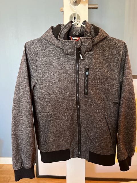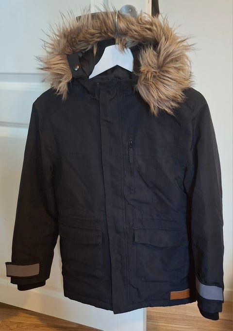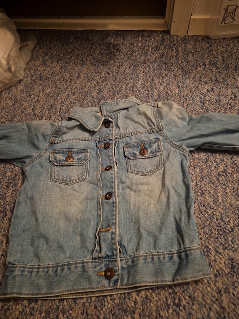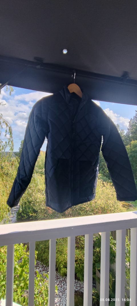 Mellomblå jakke m.rosa knapper og glidlås H& M, hette str. 122/6-7 år kr. 100