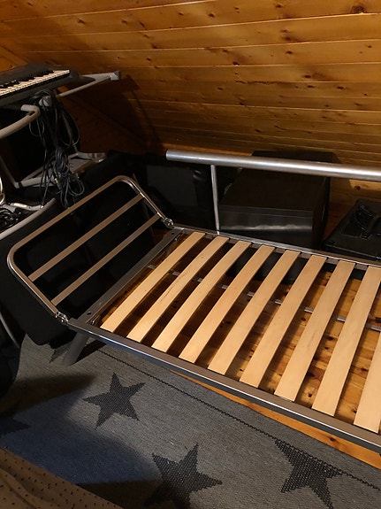 Stål/stødig og unik sofa/sovesofa/m/endekanter/nedbrettbart