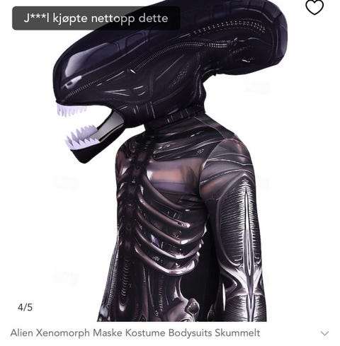 Alien Xenomorph Maske Kostyme Bodysuit Unisex
