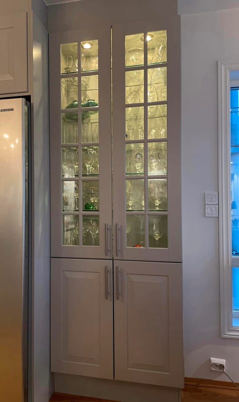 Hengsle vitrineskap glassdør.