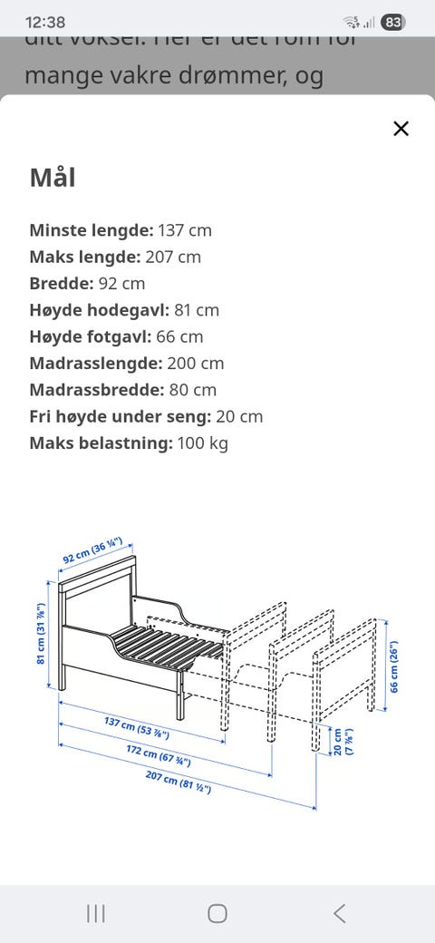Sundvik vokseseng - som ny