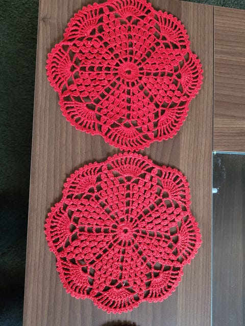 2 stk heklede brikker.