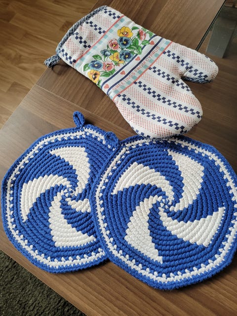 5 heklede julebrikker.