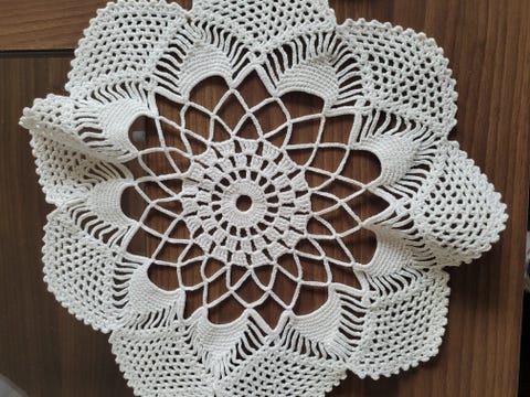 Håndheklet hvit duk