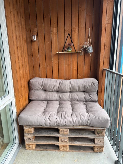 Pallesofa med grå puter