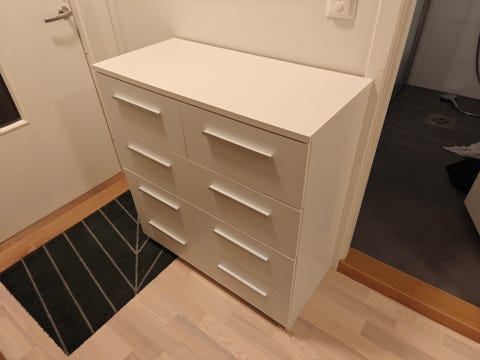 Hylle med skuffer/skap