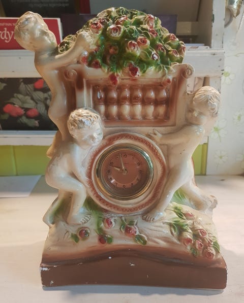 Eldre bordklokke i gips