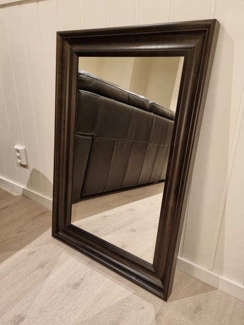 Speil med kraftig brun ramme