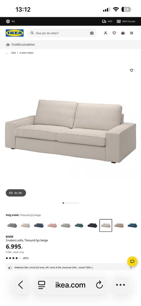 Brunstad sofa m/pall kjøpt juni 25