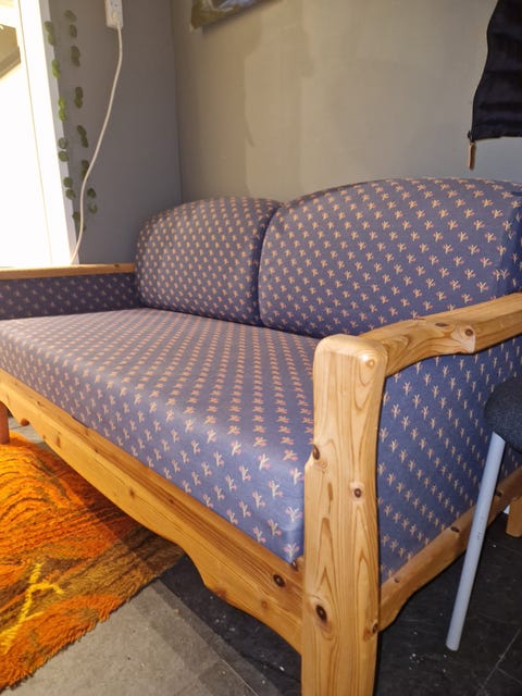 Liten, gammel sofa