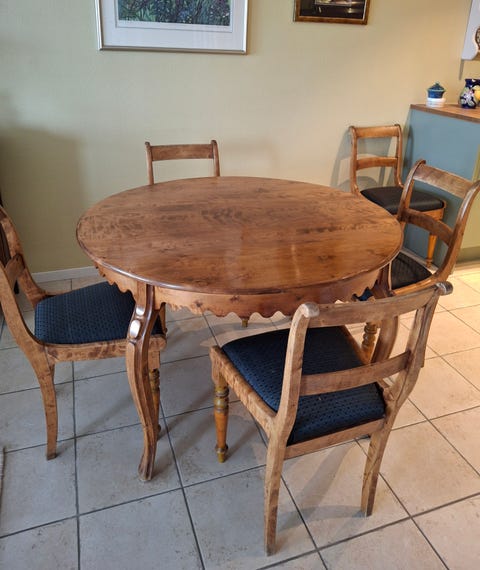 Rundt spisebord med 6 stoler