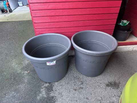 Grå plast blomsterpotte