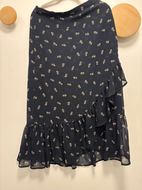 Råfint, elegant skjørt fra Massimo Dutti str 38 - mørkblå og blank overflate.