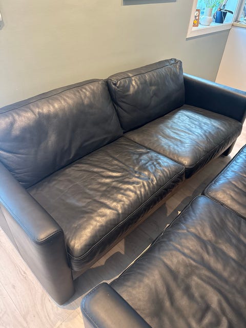 Sofa svart skinn 2 seter 5000kr