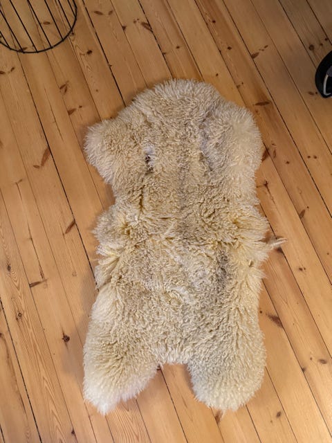 Sovepose i saueskinn