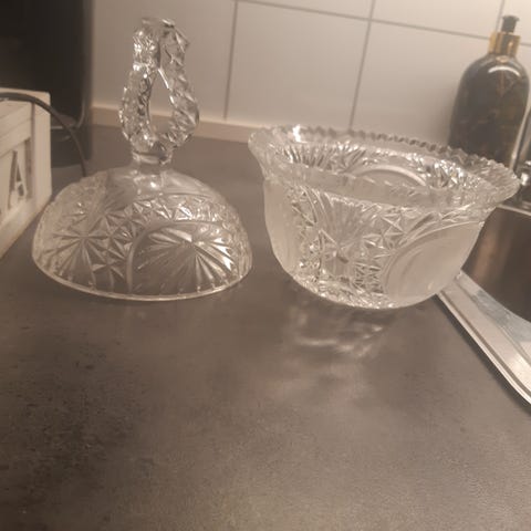 Krystall sukkerskål med lokk