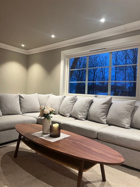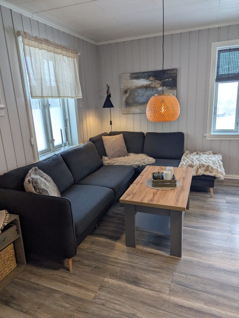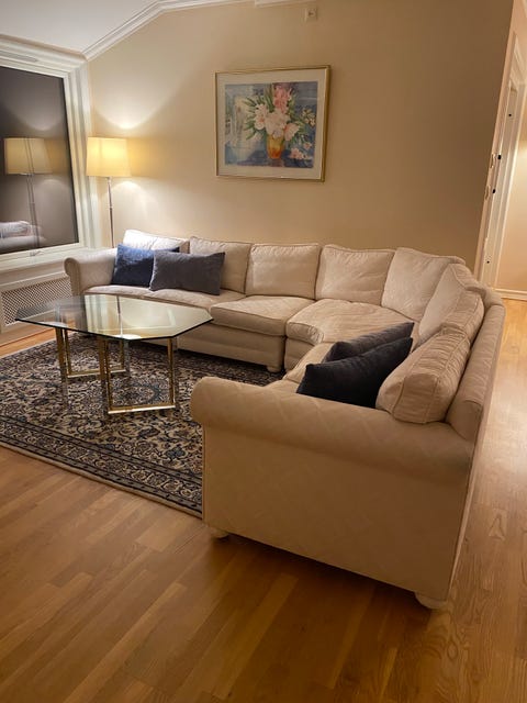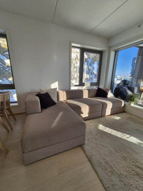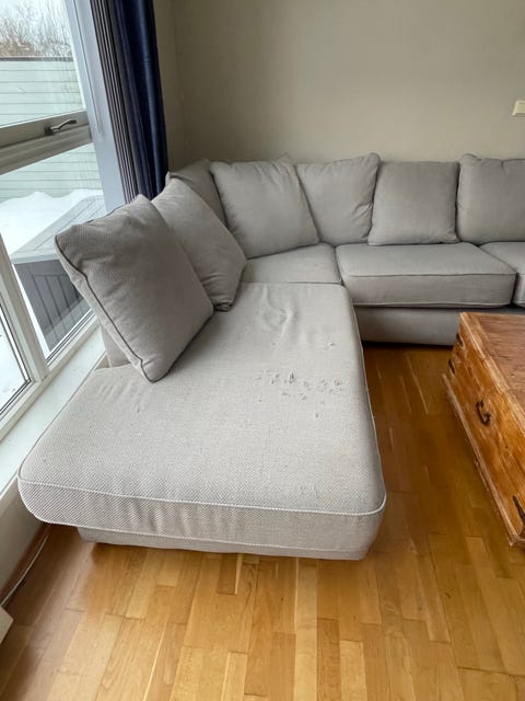 Lys beige hjørnesofa gis bort.