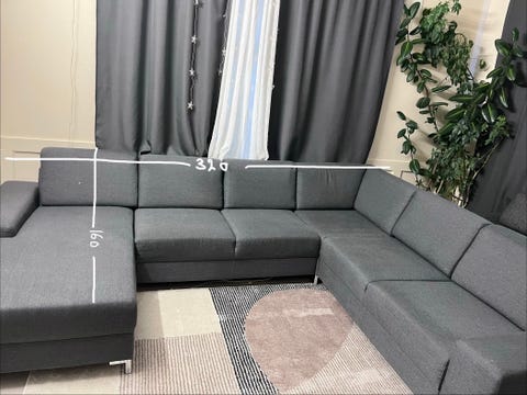 Mørk grå u sofa med puff
