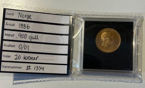 1886 Norge 20 Kroner,gull mynt