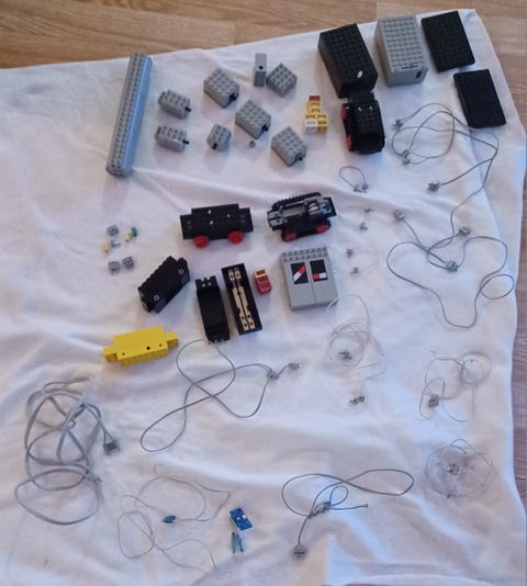 Ekstra deler til Lego duplo trillebår, blomst,gress, banan, øks,spade, hjul, fly