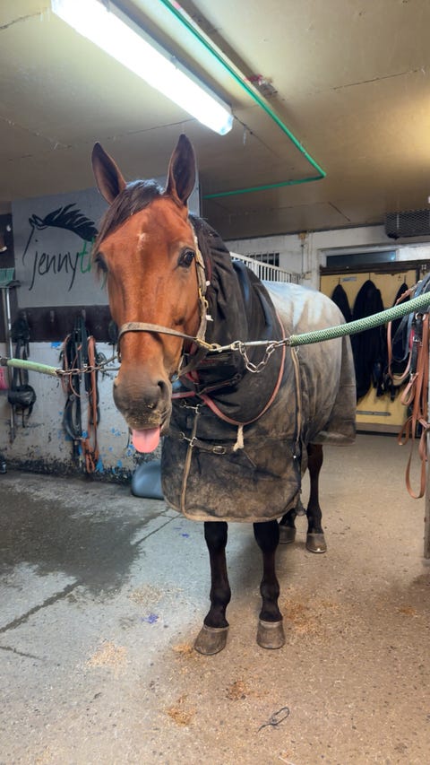 Dressurhest settes ut på halvfôr