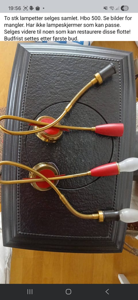 Vegglampe gis bort