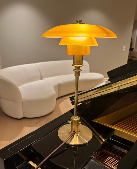Glasslampe med skjerm