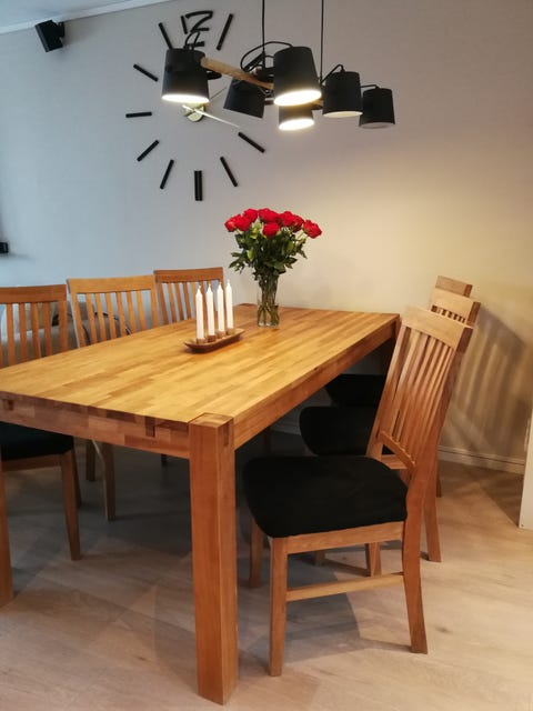 Spisebord i eik og 4 stoler