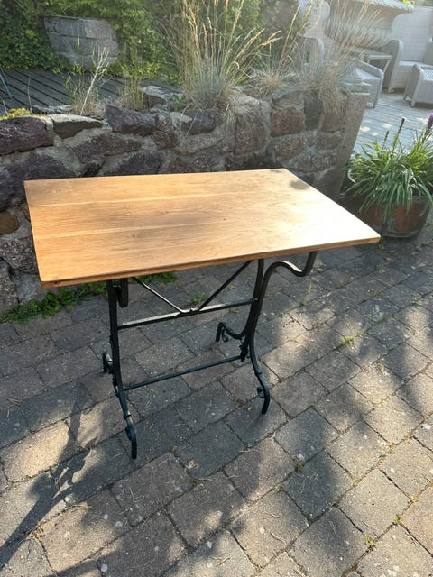 Støpejernsbord med eikeplate