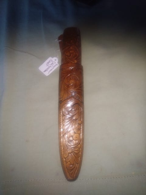 Flott håndlaget kniv i treslire
