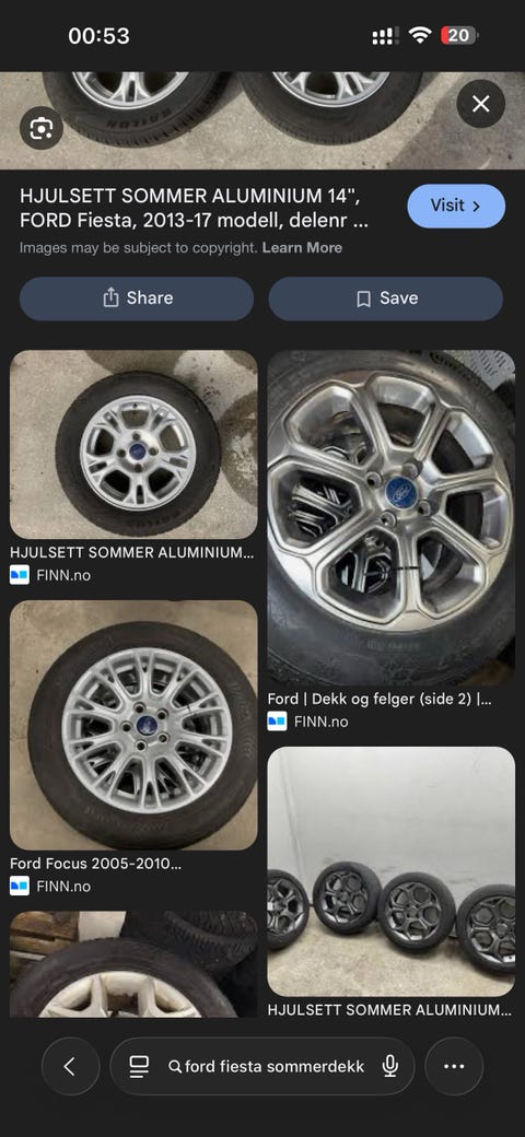 Ønskes kjøpt Sommer dekk til Ford Fiesta 2009