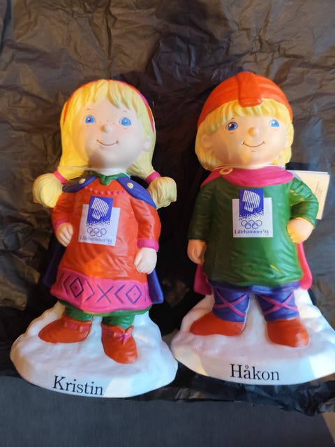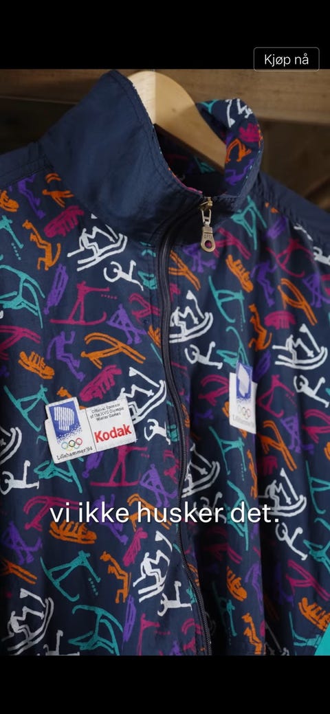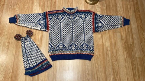 Retro fra 1994 - OL på Lillehammer Ull genser og lue flerfarget barn str 146