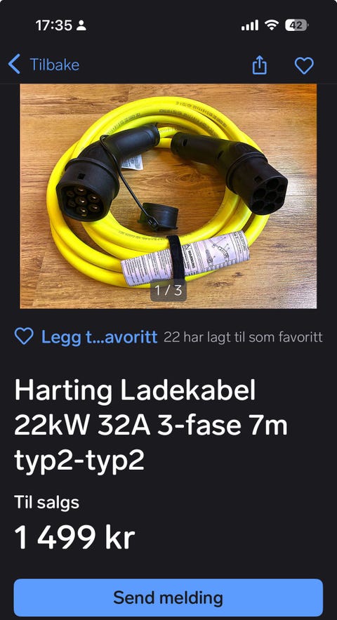 Kabel til elbil på 6 meter