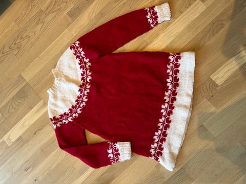 Hjemmestrikket julekjole.