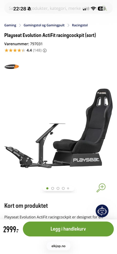 PLAYSEAT MED RATT/GIR OG PEDAL