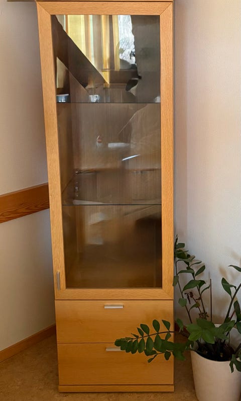 Hyller/skap med glassdør