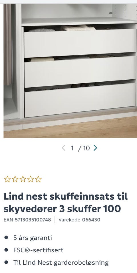 Skuffeinnsats 100 cm