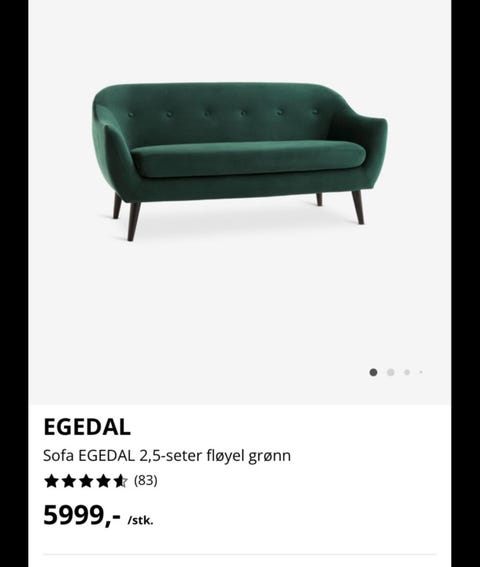 Antikviteter og kunst (332)Dyr og utstyr (268)Elektronikk og hvitevarer (443)Foreldre og barn (473)Fritid, hobby og underholdning (231)Hage, oppussing og hus (733)Klær, kosmetikk og tilbehør (113)Møbler og interiør (29 322)Næringsvirksomhet (502)Sport og friluftsliv (70)Utstyr til bil, båt og MC (25)