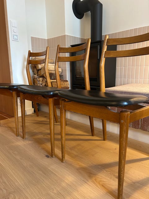 Teak salongbord + 4 stoler