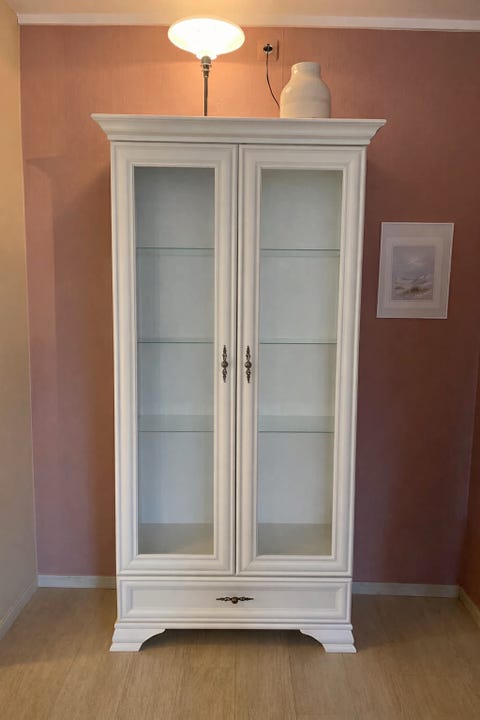 Vitrineskap, Heltre, hvit