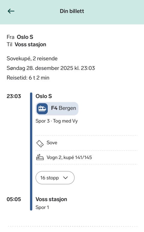 Togbiletter Gol -Bergen 26.12 ønskes kjøpt