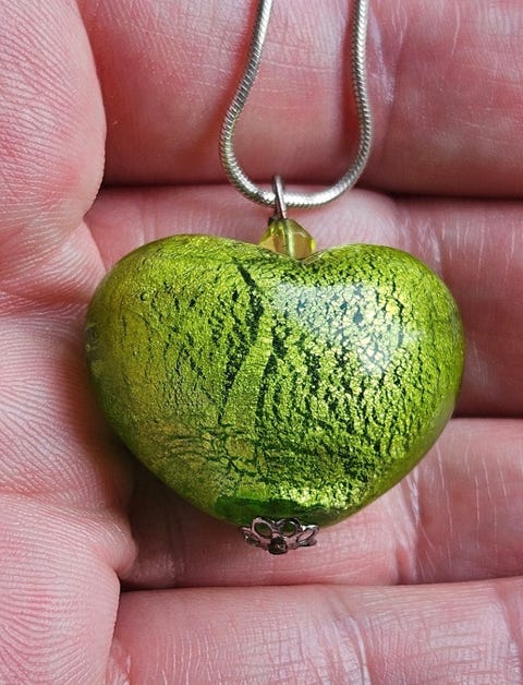 Veldig fint smykke med grønn hjerte