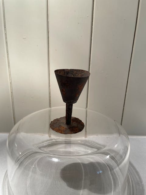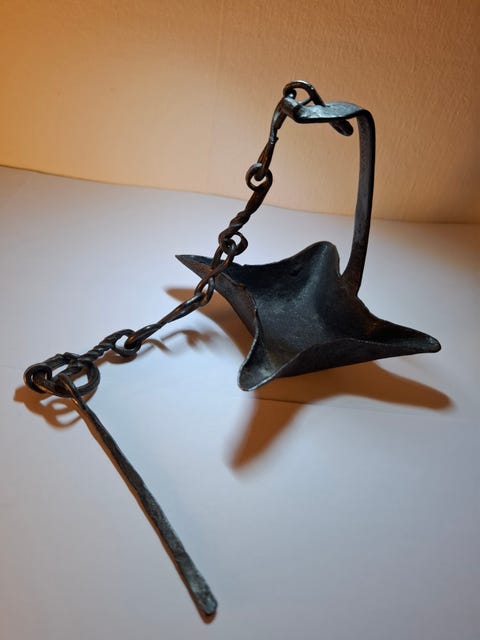 Gammel lystake med gravert troll