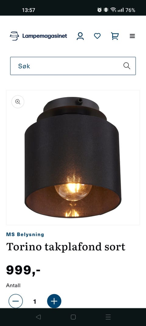Taklampe selges rimlig