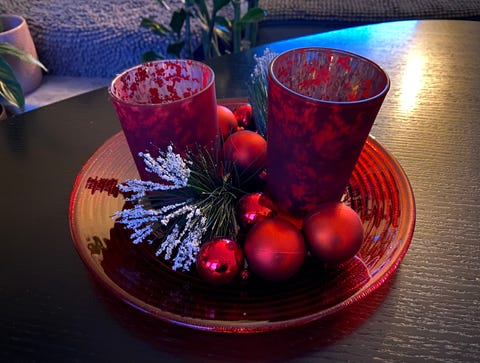 Fat med pynt og lysholdere