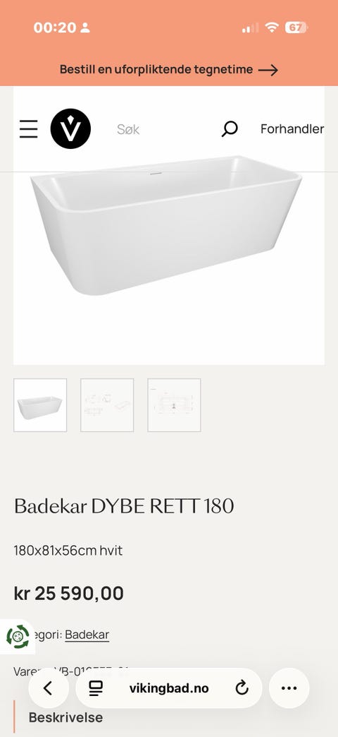 Neptun Frittstående Badekar Hvit
